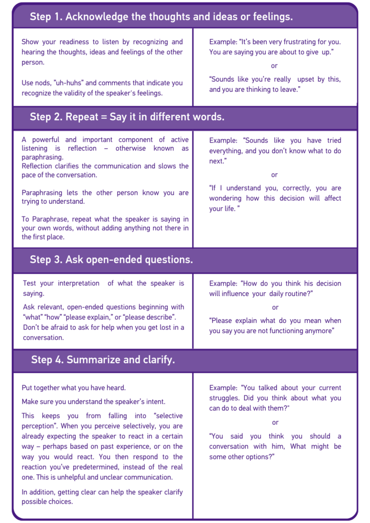 Active listening has to be practiced regularly. The more you exercise active listening in your daily life, the more it becomes a matter of habit, a practice which is naturally part of your communication.